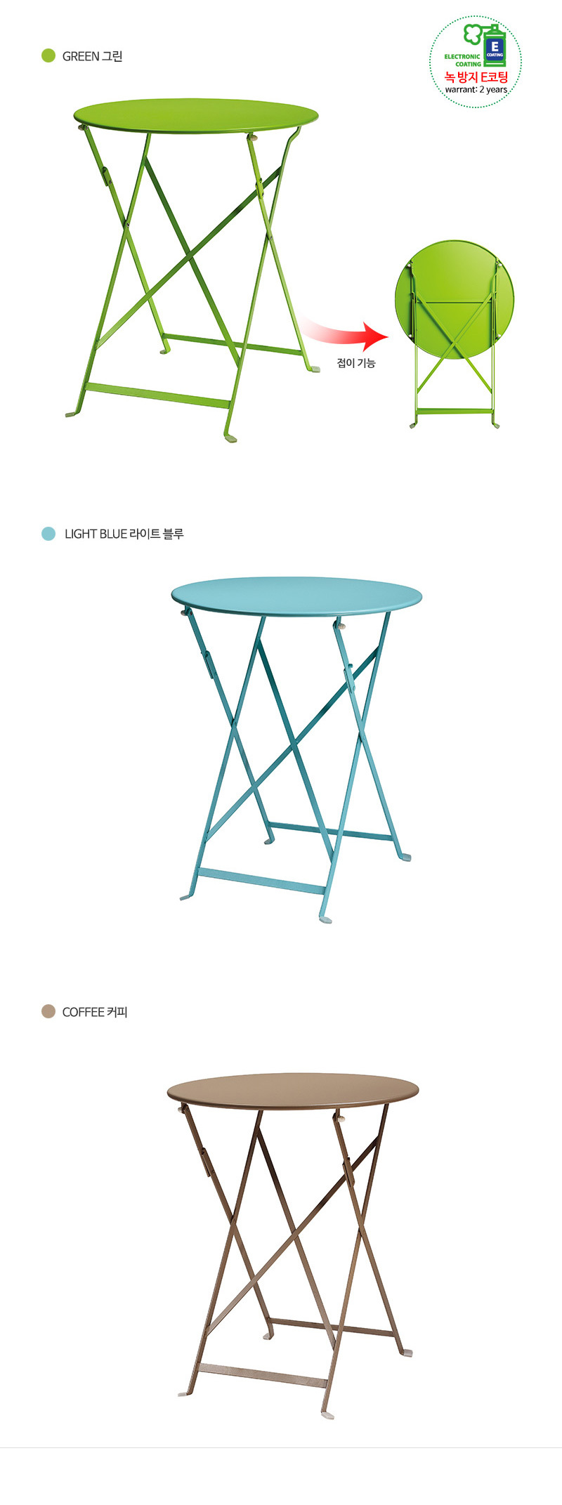 심플디자인 접이기능 사계절 아웃도어인기 카페 펜션 테라스 정원용 철재 원형테이블