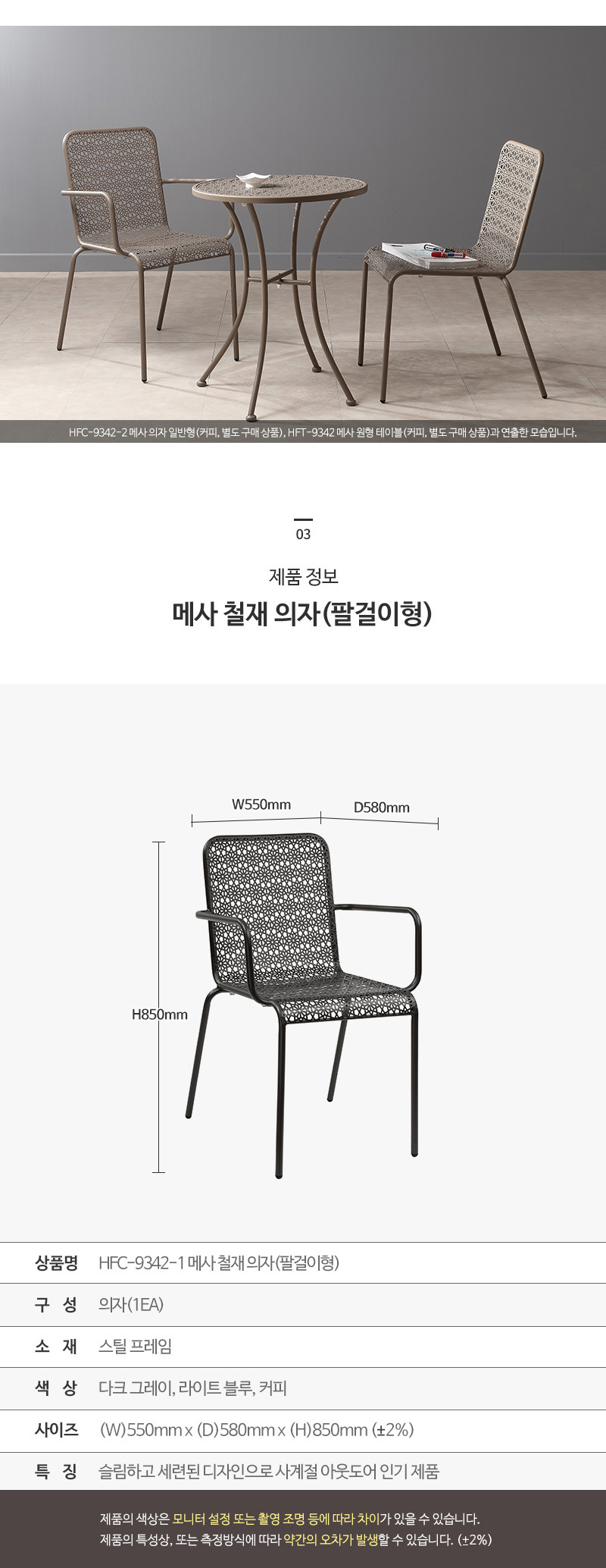 이미지 확대보기사계절 아웃도어 인기제품 벌집디자인 스틸프레임 카페 테라스용 야외의자
