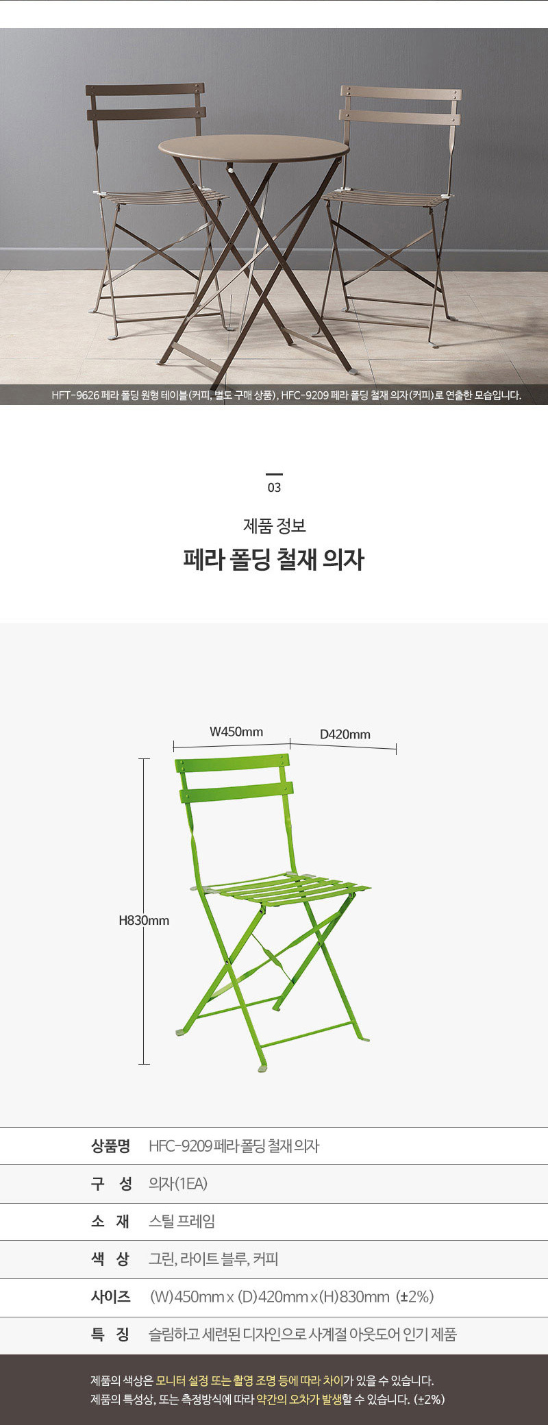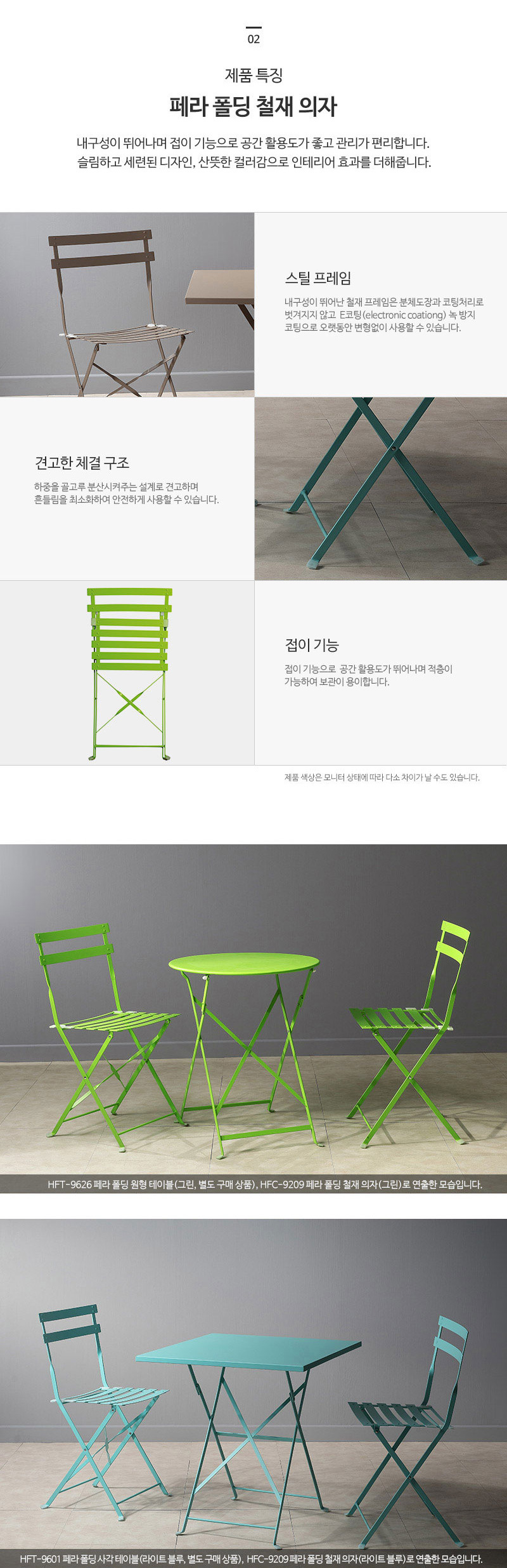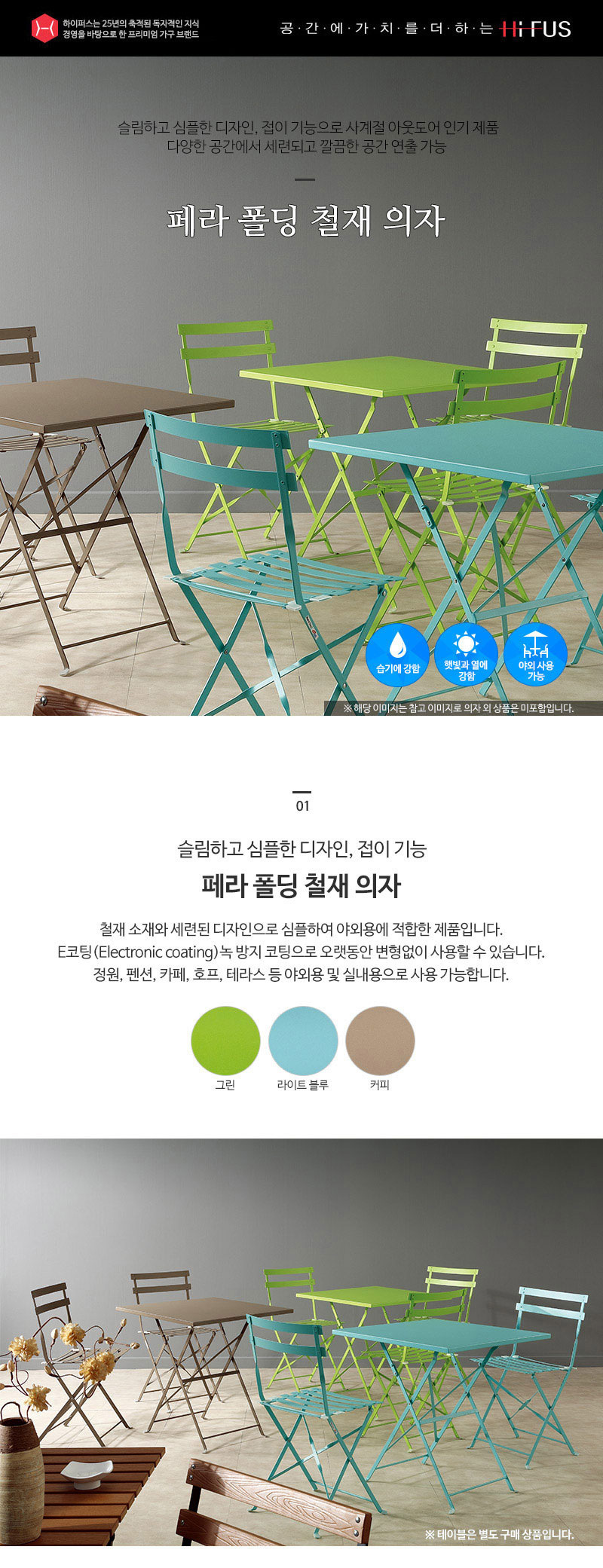 이미지 확대보기정원 펜션 테라스 카페 녹방지 코팅 철재소재 접이식 폴딩의자