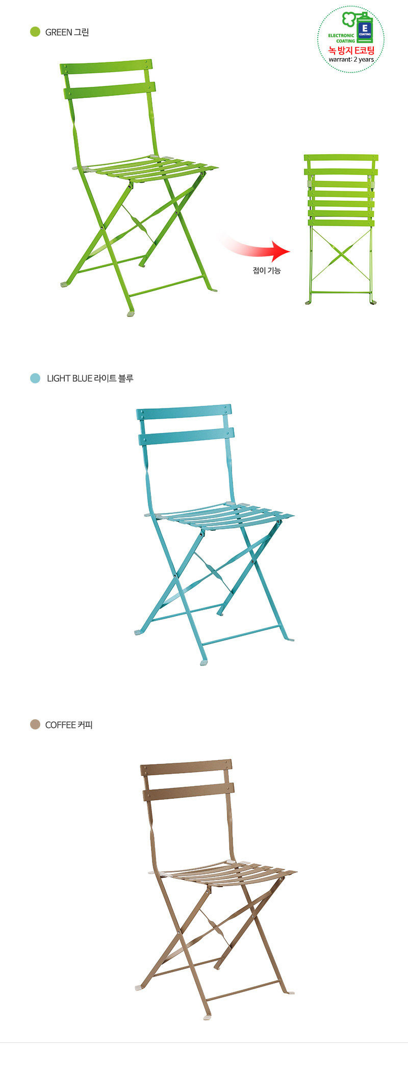 • 정원 펜션 테라스 카페 녹방지 코팅 철재소재 접이식 폴딩의자