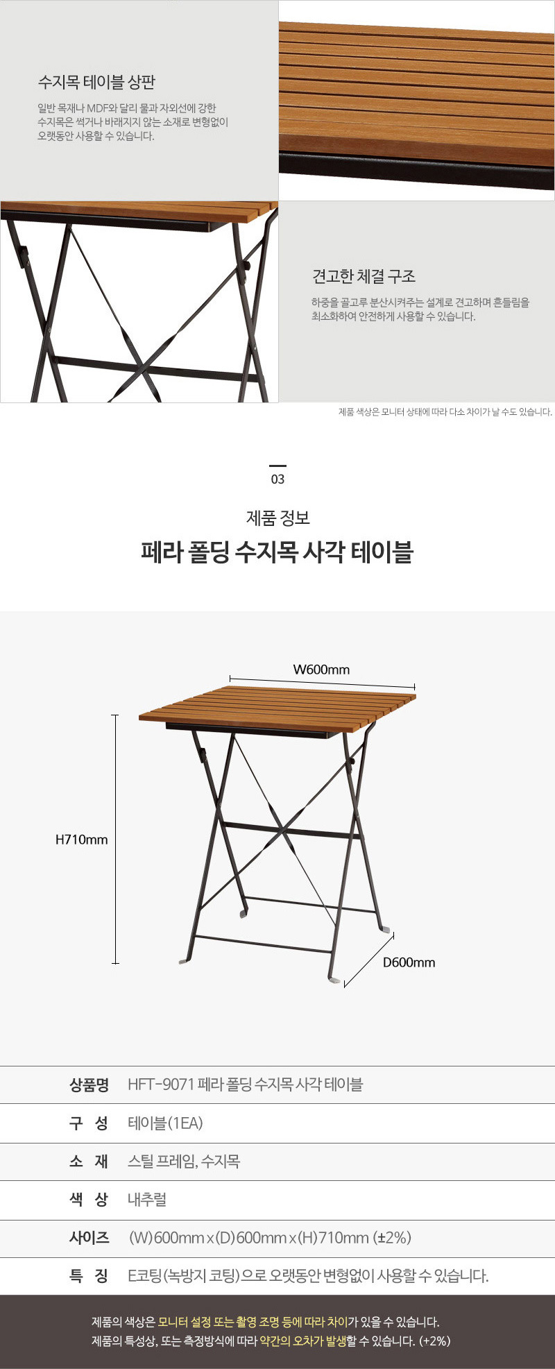 • 야외 폴딩 우드테이블 접이식 600 사각테이블