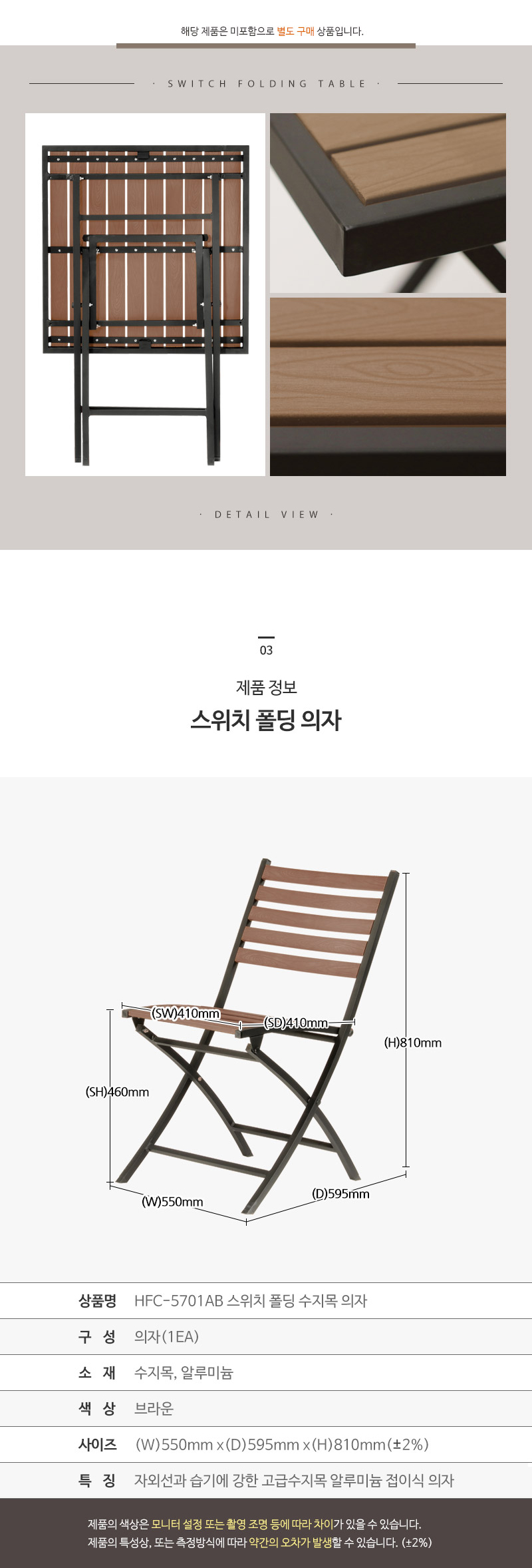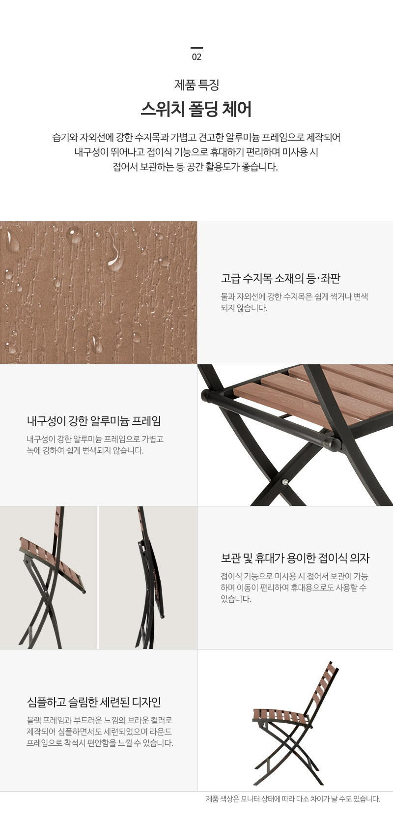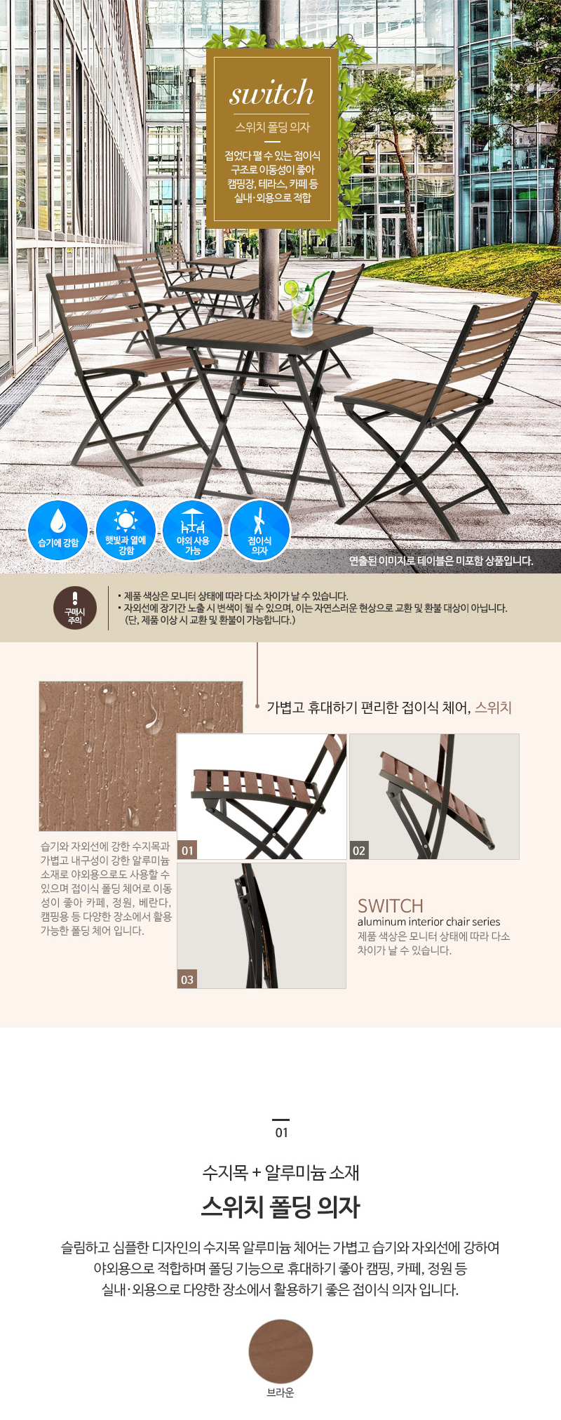 카페 정원 베란다 캠핑용 테라스 수지목 알루미늄 접이식 폴딩 체어