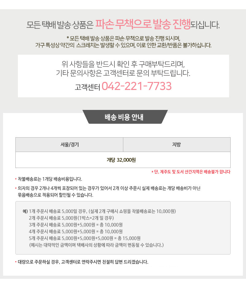 ※ 교환/반품시에도 개당 배송비로 동일하게 적용되며,