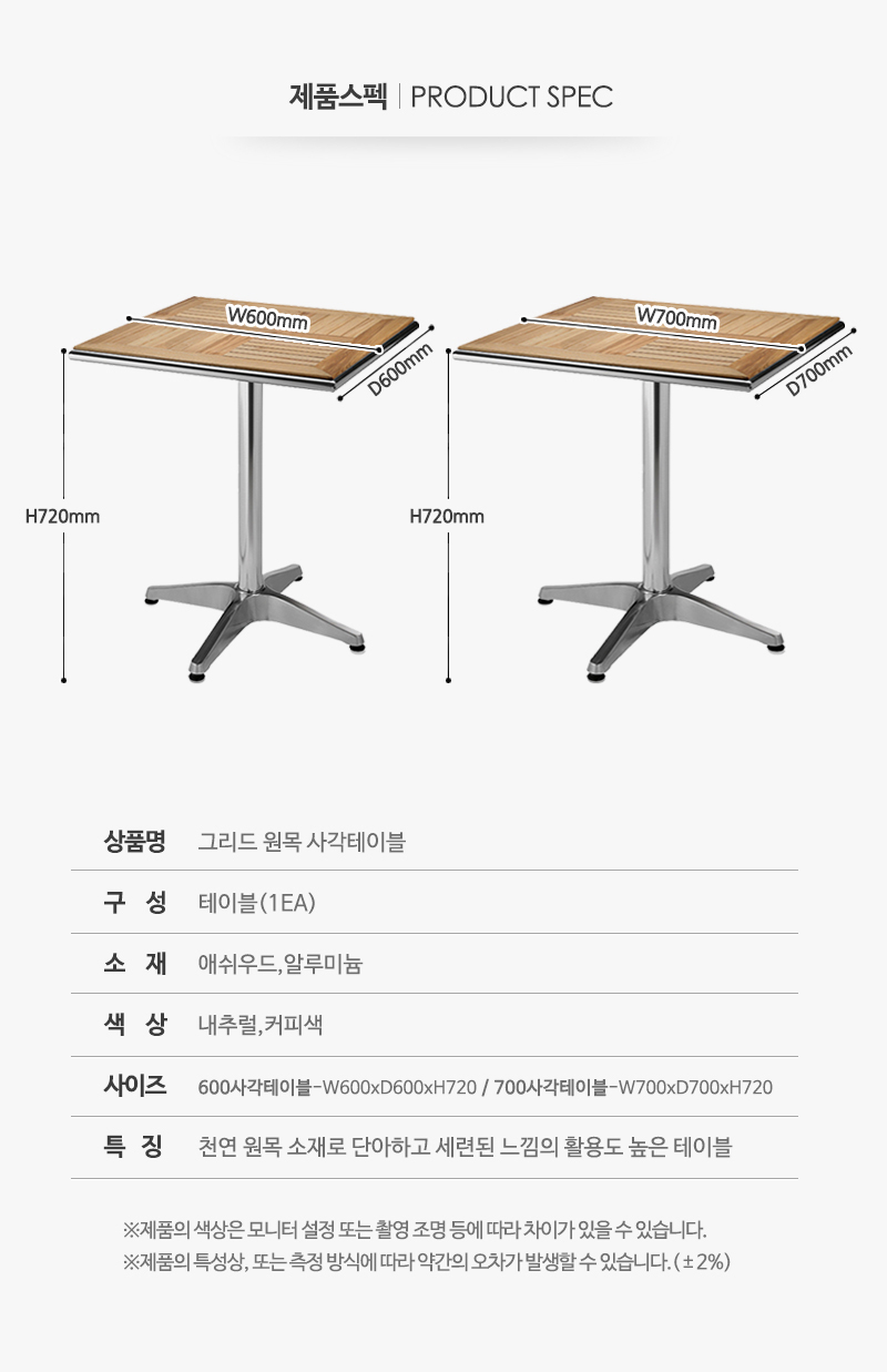• 천연 원목 애쉬우드 700 사각 다용도 2인 테이블