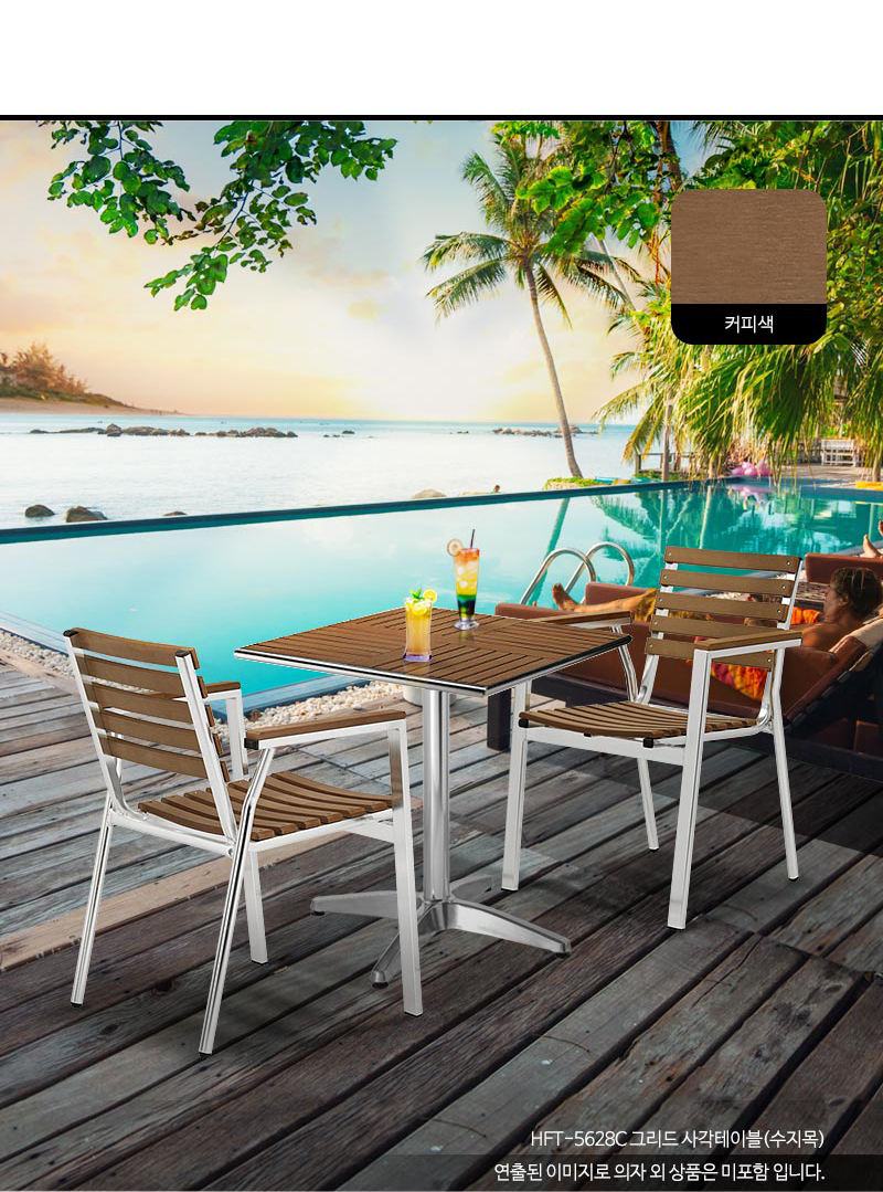• 야외용 수지목 등좌판 알루미늄 프레임 카페 정원 테라스 리조트체어