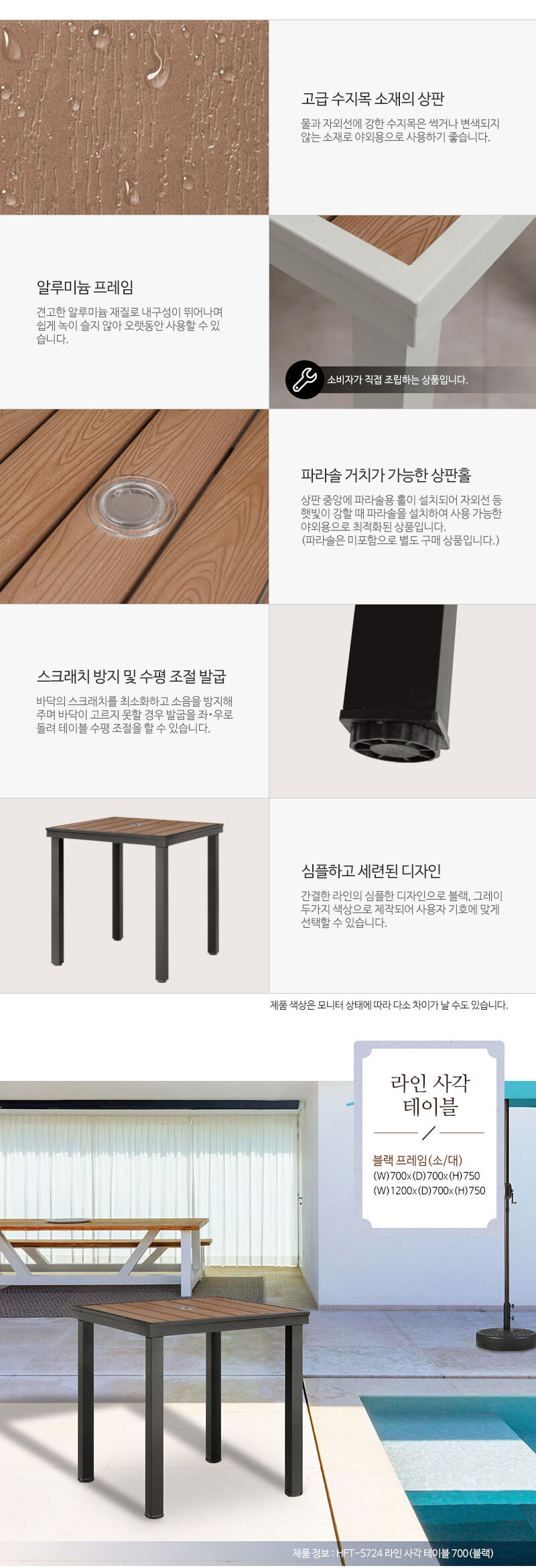 이미지 확대보기고급 수지목 4인 사각 1200 야외 파라솔용 테이블