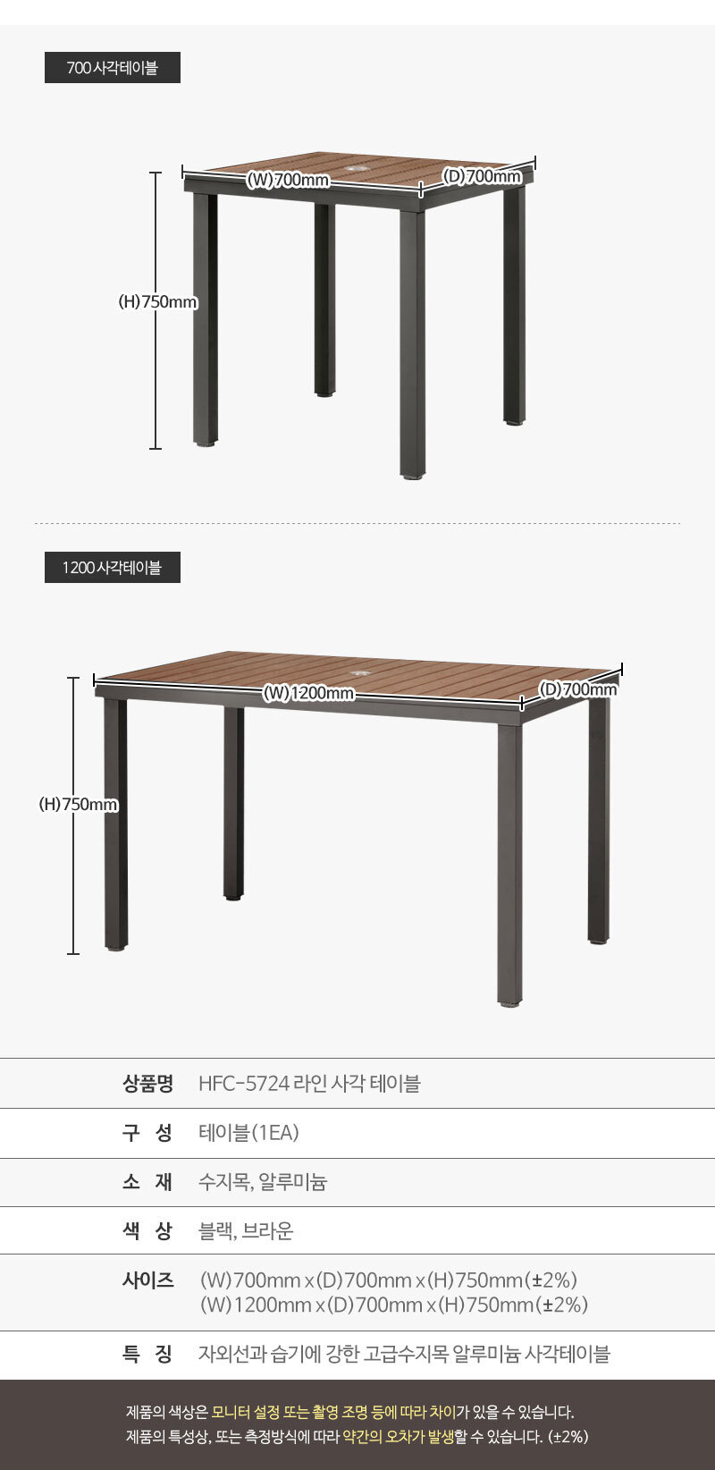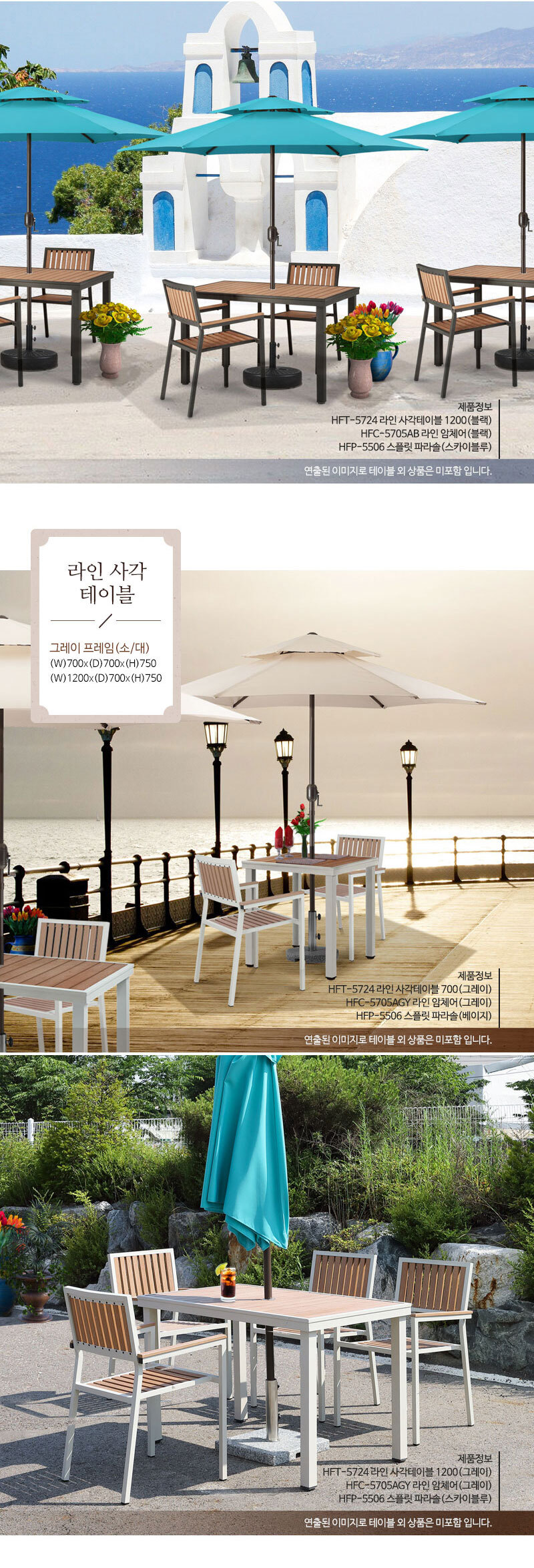 고급 수지목 4인 사각 1200 야외 파라솔용 테이블