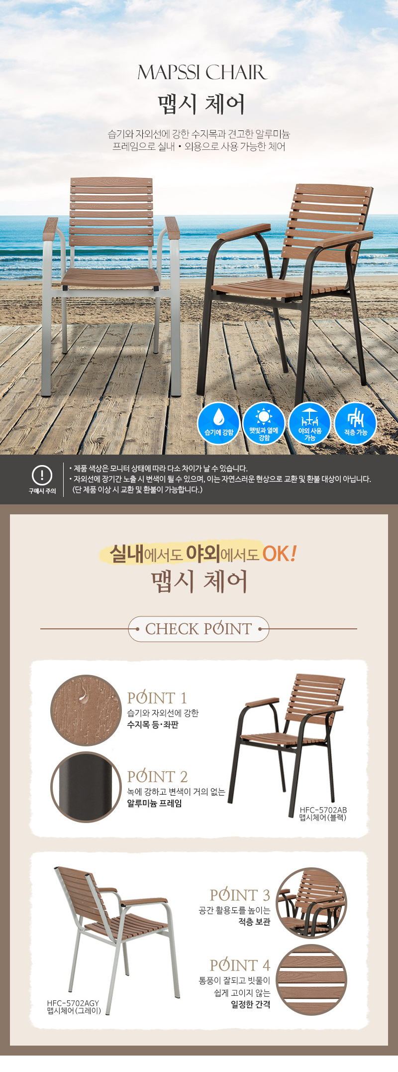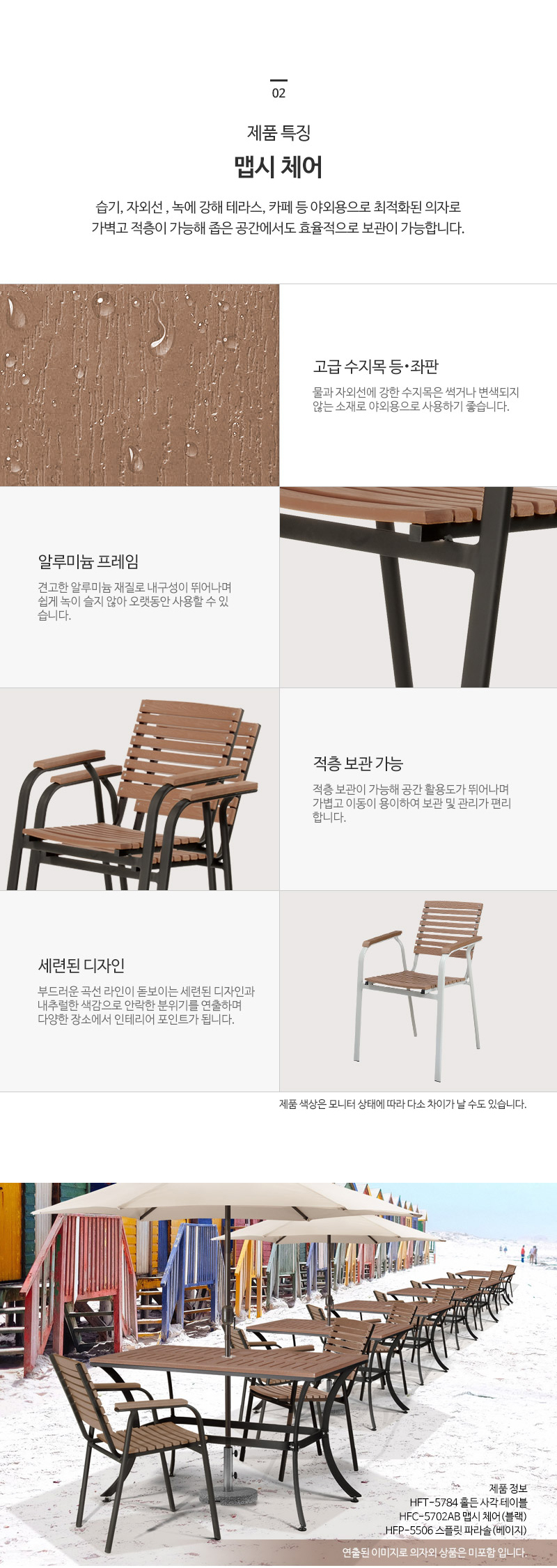 해변가 휴양지 펜션 카페 정원 적측가능 수지목 알미늄프레임 블랙 그레이 야외의자