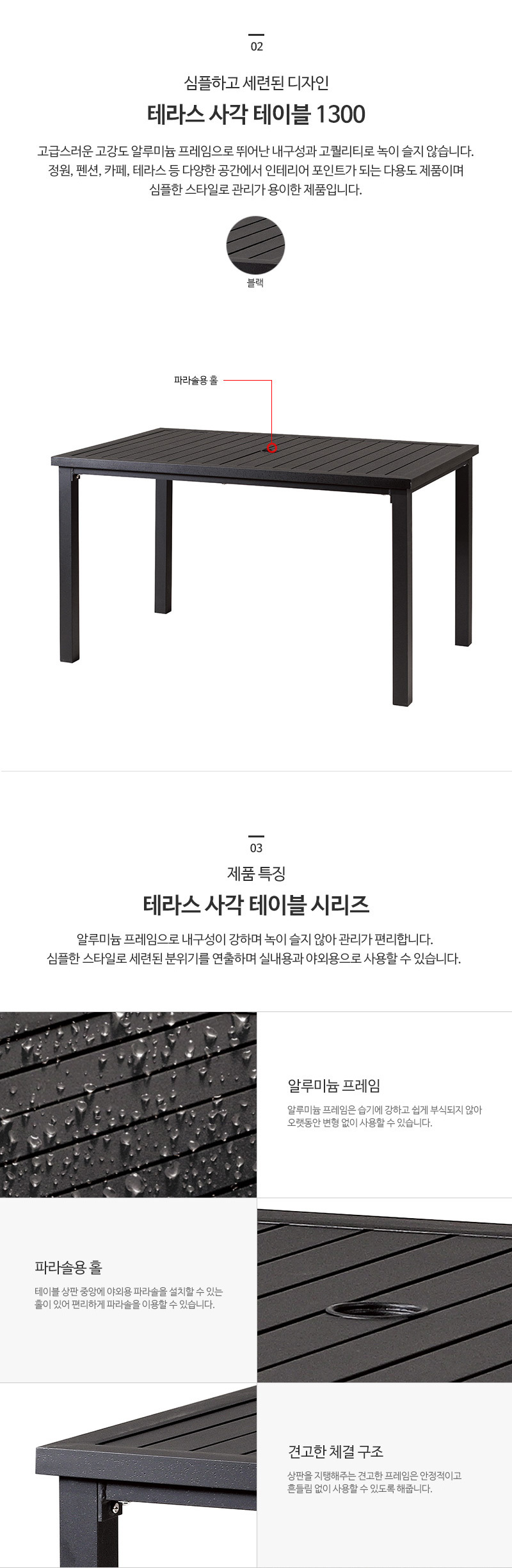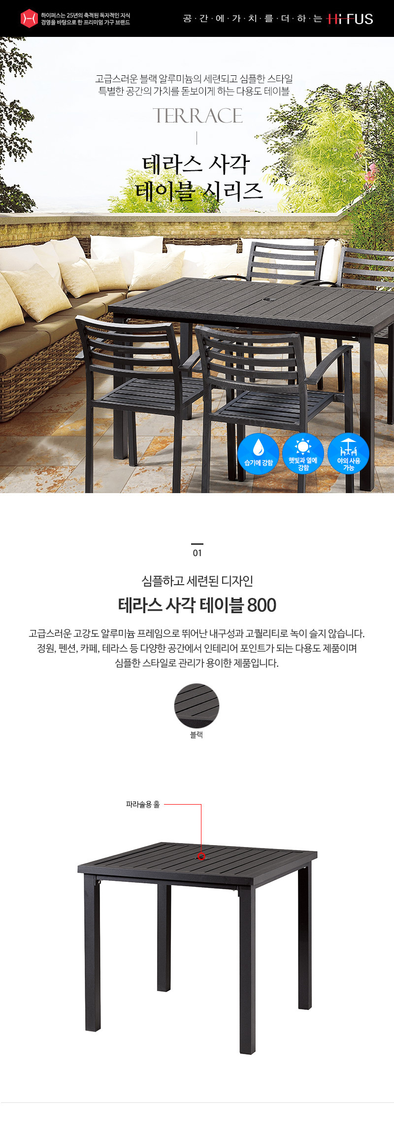 이미지 확대보기정원 펜션 카페 테라스 알루미늄 프레임 800 블랙 사각 테이블