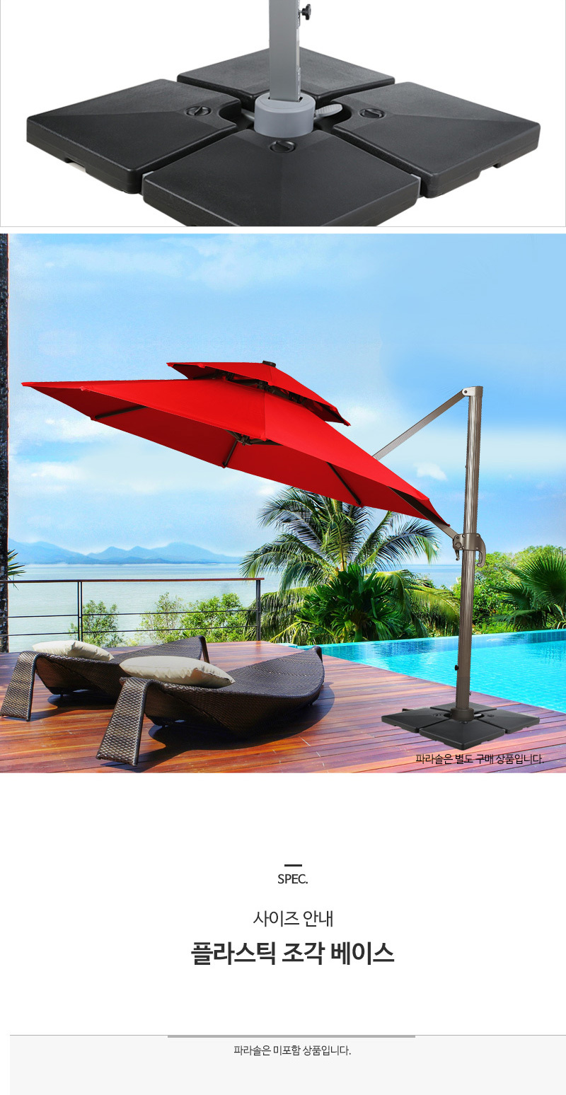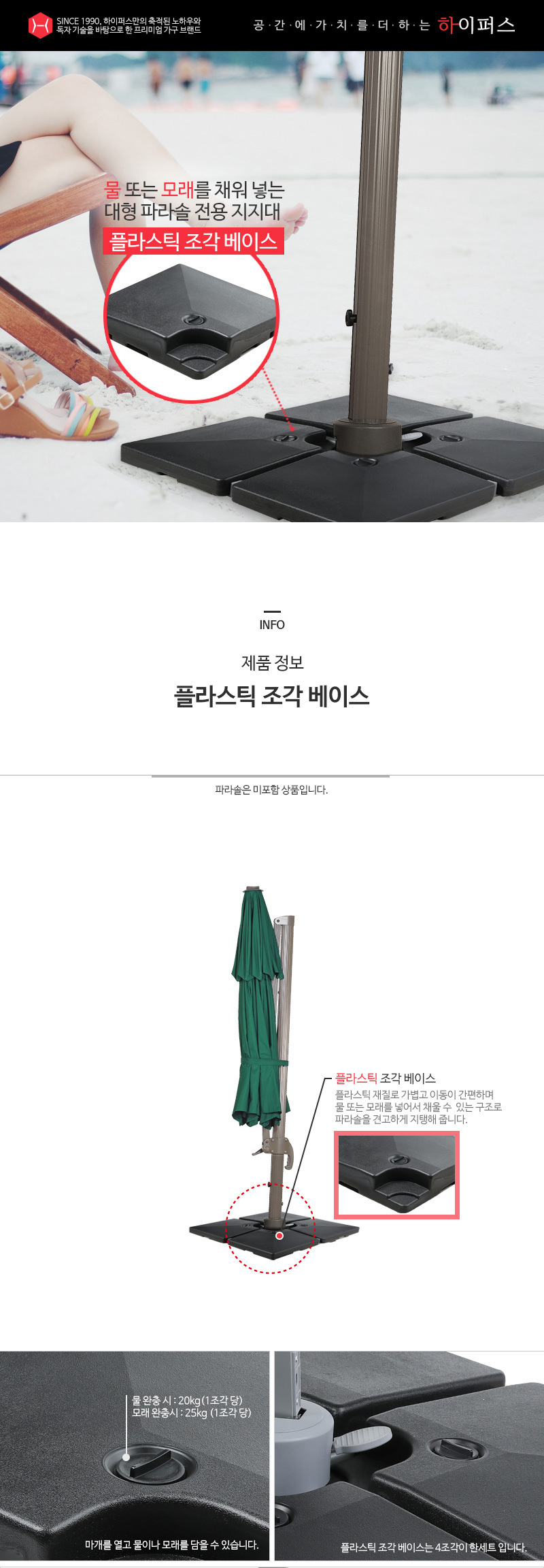 이미지 확대보기물 또는 모래를 채워 넣은 대형 파라솔 플라스틱 조각베이스 전용지지대