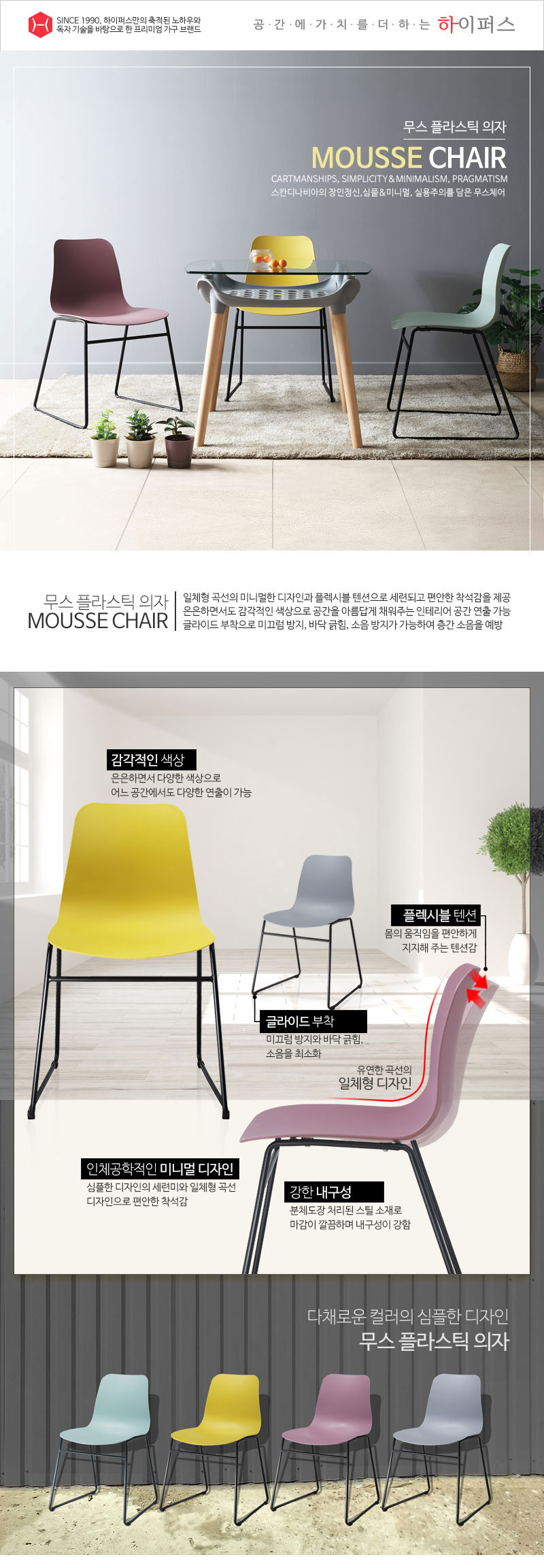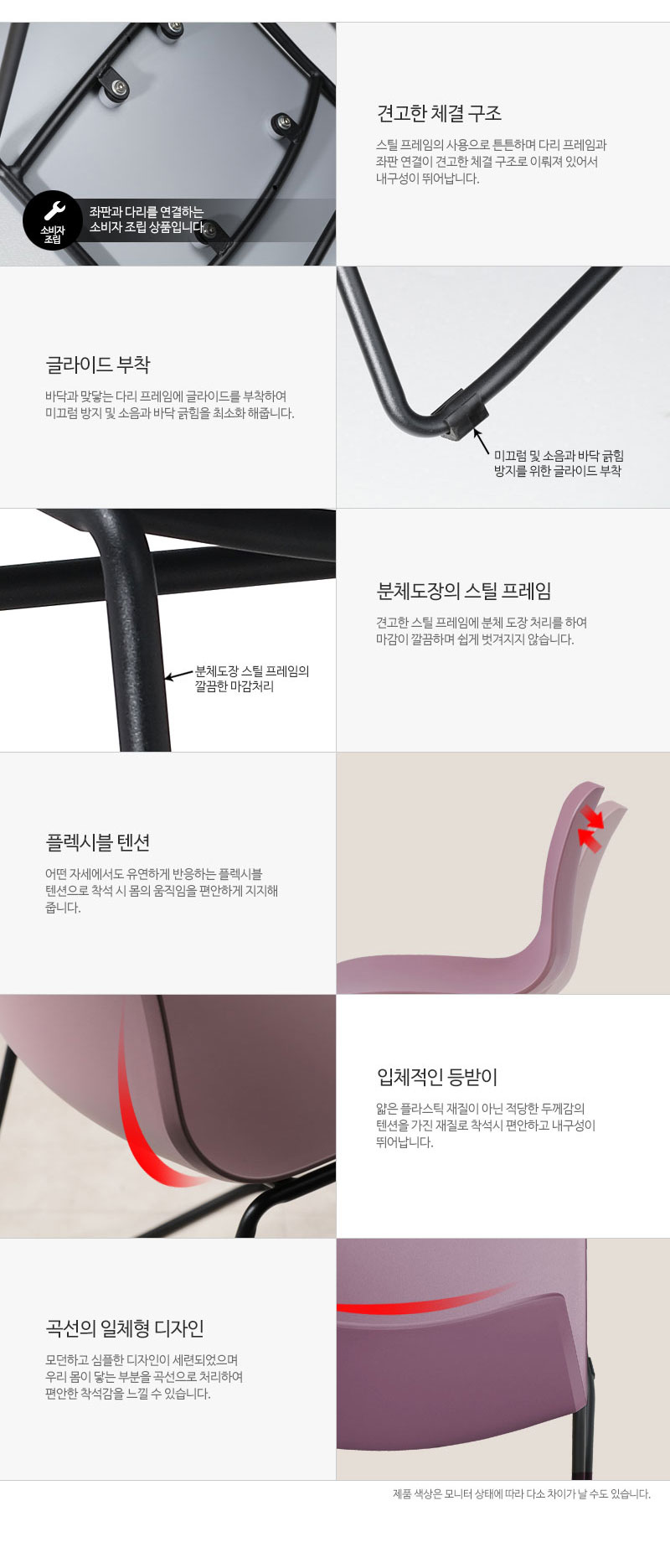 • 미니멀 디자인 파스텔톤 회의장 카페 펜션 서재 오피스 플라스틱 철재의자