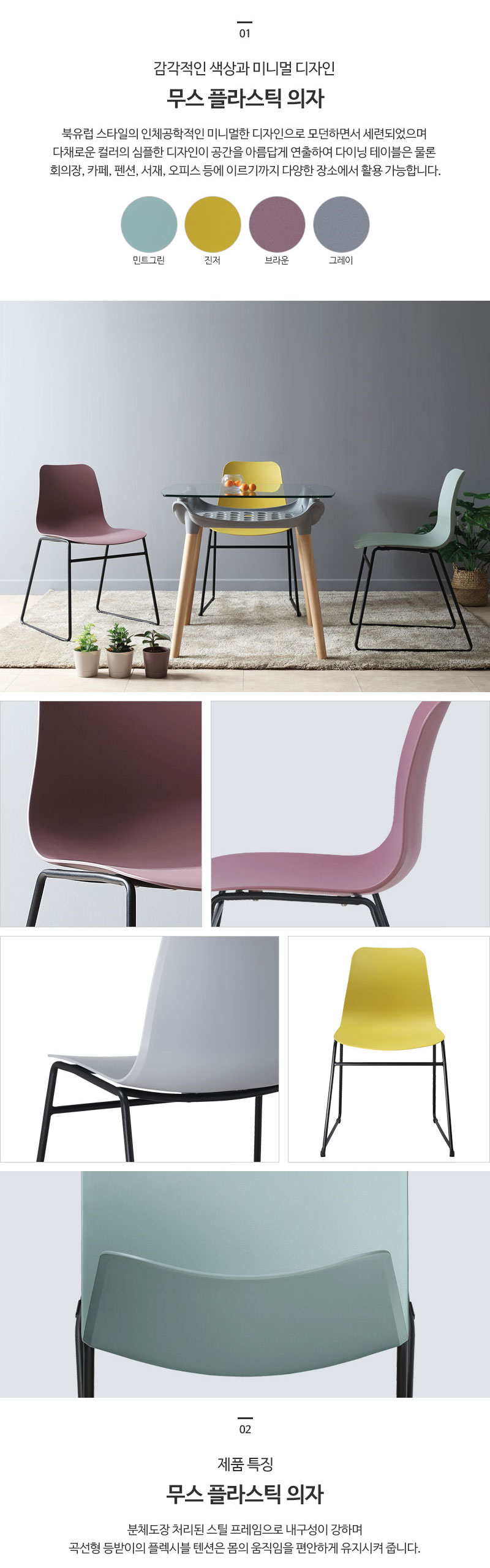 이미지 확대보기미니멀 디자인 파스텔톤 회의장 카페 펜션 서재 오피스 플라스틱 철재의자